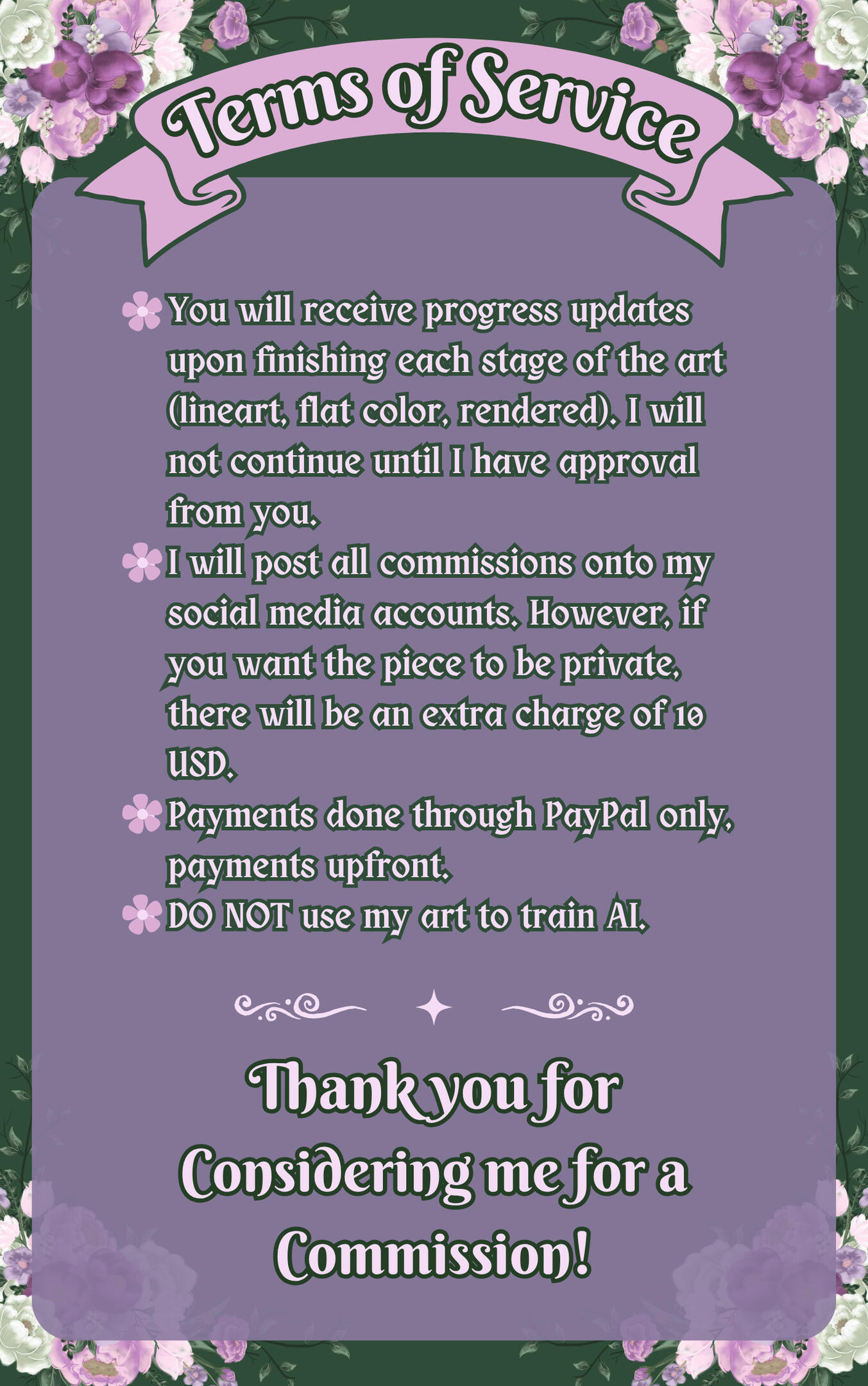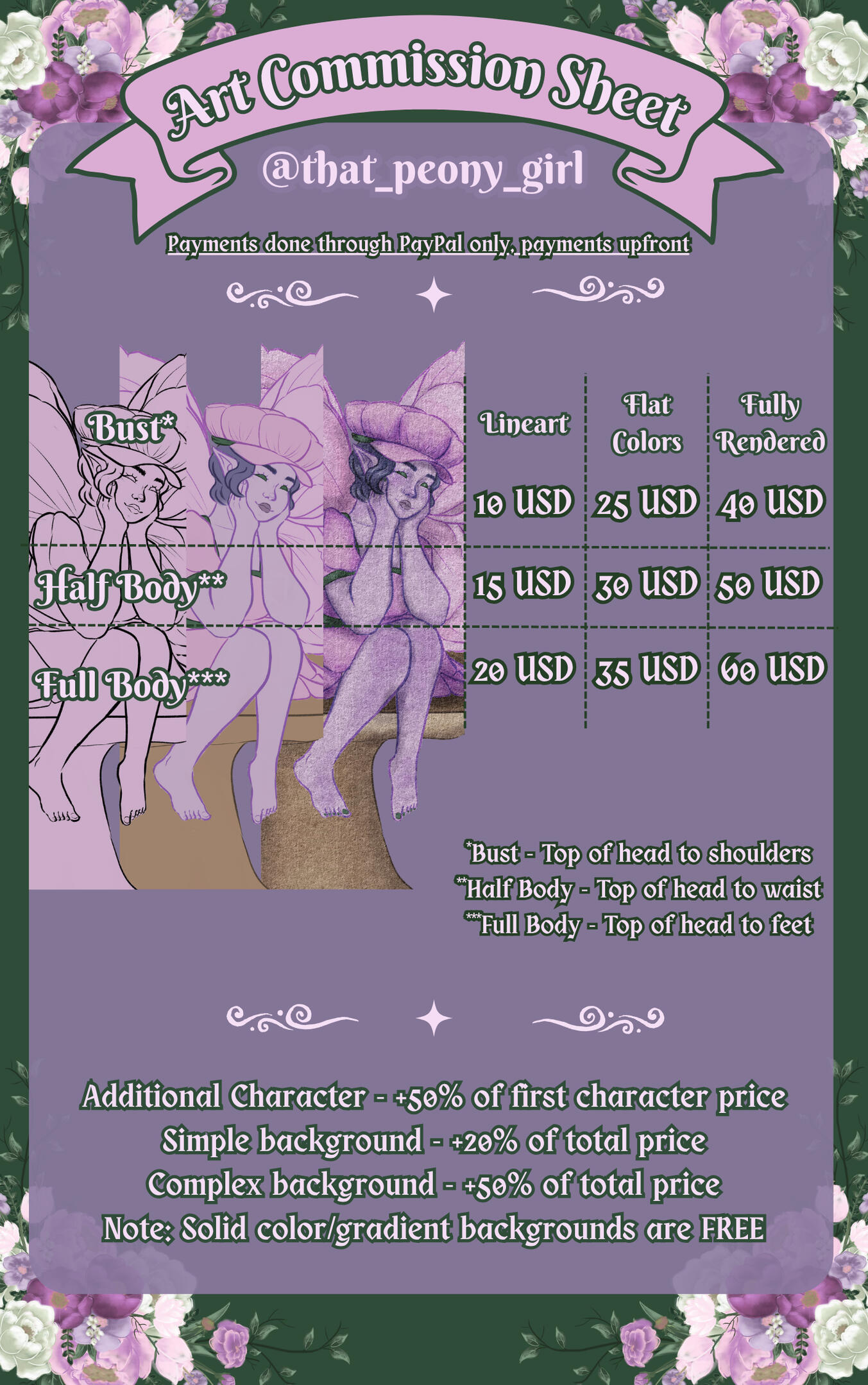 Have a look around! Follow me on my social media platforms below for more art and shenanigans @that_peony_girlIf you're interested in a commission, check out my comm sheet and reach out through any of those platforms or email me at [email protected]!! π©·πΈπ§